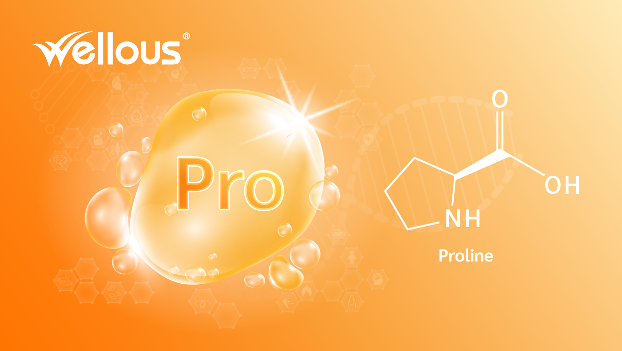 Proline là một acid amin không thiết yếu, có thể được tổng hợp từ các acid amin khác trong cơ thể. Proline chiếm khoảng 15% tổng lượng acid amin trong collagen.