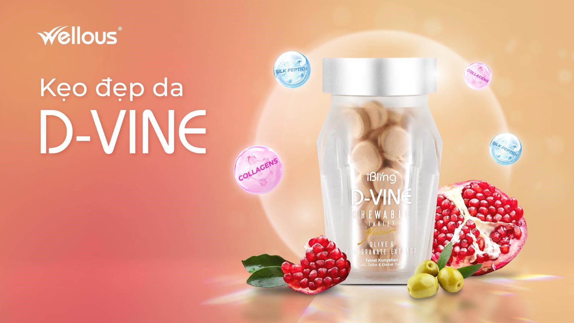 Viên uống chống nắng D-VINE đánh dấu một bước tiến mới trong việc bảo vệ da. Với thành phần chính bao gồm chiết xuất tơ tằm Silk Peptide, chiết xuất lựu đỏ từ Tây Ban Nha VIQUA®, Collagen Tripep20 từ Hàn Quốc, và chiết xuất O-liu HYTOLIVE từ Tây Ban Nha, sản phẩm này hứa hẹn đem lại nhiều công dụng quan trọng cho làn da của bạn.