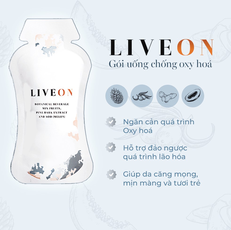 Ngoài ra, Wellous khuyên bạn nên bổ sung gói uống chống oxy hóa LIVEON - giải pháp toàn diện cho sức khỏe và làn da. Được xây dựng với thành phần chính là chất chống oxy hóa mạnh mẽ, sản phẩm không chỉ mang đến sự tươi trẻ cho làn da của bạn mà còn hỗ trợ quá trình đảo ngược quá trình lão hóa.